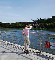<[남성 세미정장] 남자 캐주얼 정장 코디 - 울산 태화강대공원의 어느 벤치에 앉아 한 컷>