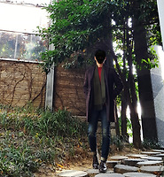 상의 '터틀넥 니트'의 블루 컬러와 연결되는 네이비 '슬랙스'는 물론, 그 아래 신어준 와인 브라운 '캐주얼 구두'는 이미 완성된 '코디'의 한 예시이며, 거기에 베이지 '스웨이드 자켓'이 더해져 전체적인 룩(Look)에 포인트를 준 모습이다.