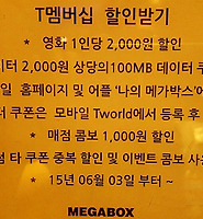 | 메가박스 SK텔레콤 T멤버십 할인 & T데이터 쿠폰 (T멤버십 데이터 플러스) (2) | 2015.10.04 |