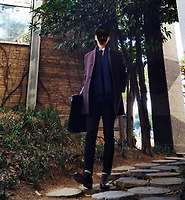 꽤나 긴(롱 Long) 기장감과 더불어 짙은 카키색이 돋보이는 '쓰리버튼 싱글 코트'가 되겠다. ^^