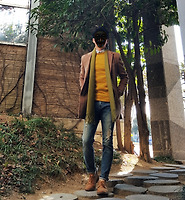 (브라운 색상의 아스터 '싱글코트'와 '투블럭 니트' 간의 조화도 참고하자며... ^^;)