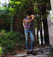 다시 한 번, '남자 티셔츠 배바지' 패션을 연출한 모습이겠다.
